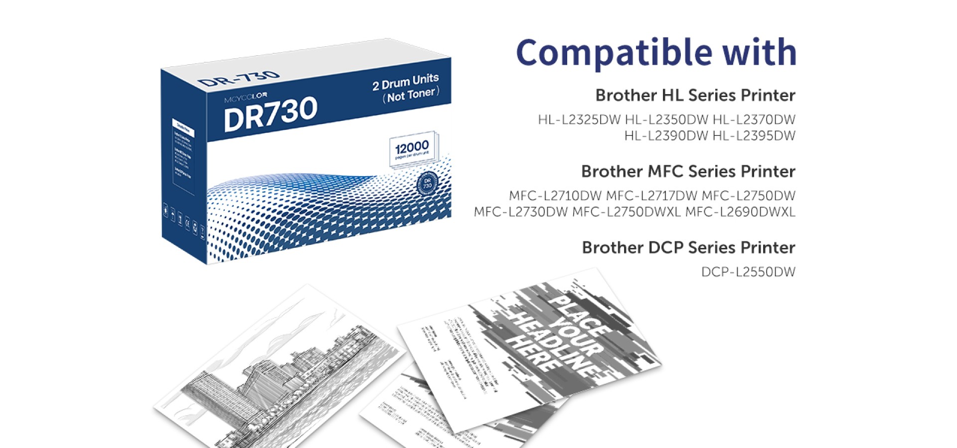 MCYCOLOR Compatible DR730 Drum Unit Replacement for Brother DR-730 DR 730 to Use with MFC-L2710DW MFC-L2750DW HL-L2395DW HL-L2370DW HL-L2350DW HL-L2390DW DCP-L2550DW Printer (2 Pack, NOT Toner) Packing List: 2 x DR730 Drum Unit ( not included toner cartridge). Drum unit MUST BE RESET after i..